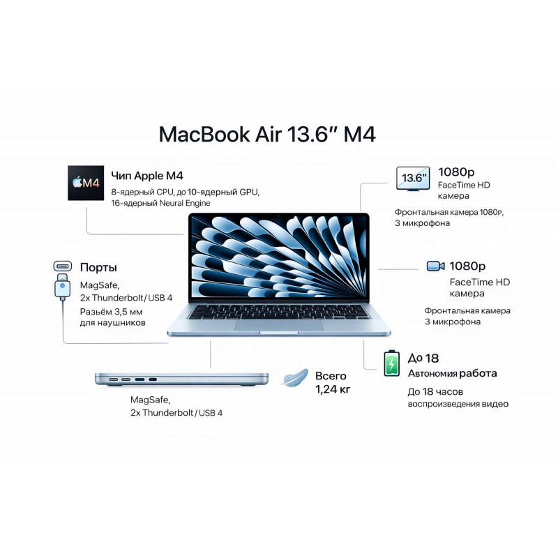 Етикети: Apple MacBook Air, MacBook Air M4, MacBook Air 13.6, Apple M4 лаптоп, лаптоп Apple, MacBook Air 16GB, MacBook Air 256GB, Sky Blue MacBook Почему именно так