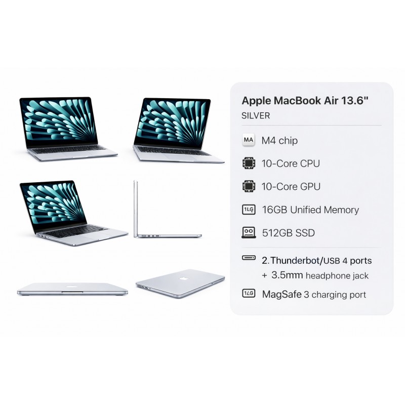 Apple MacBook Air 13.6 Silver (M4 / 10C CPU / 10C GPU / 16GB / 512GB)